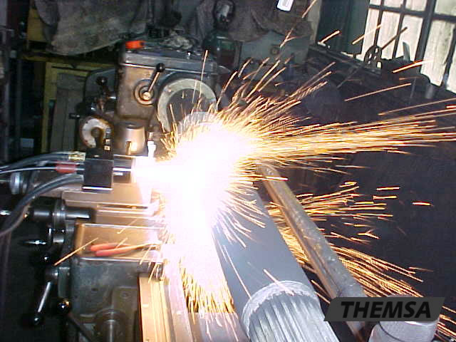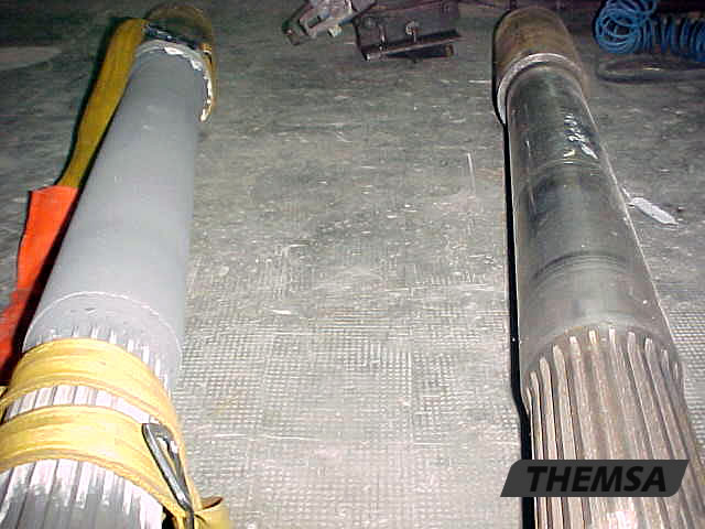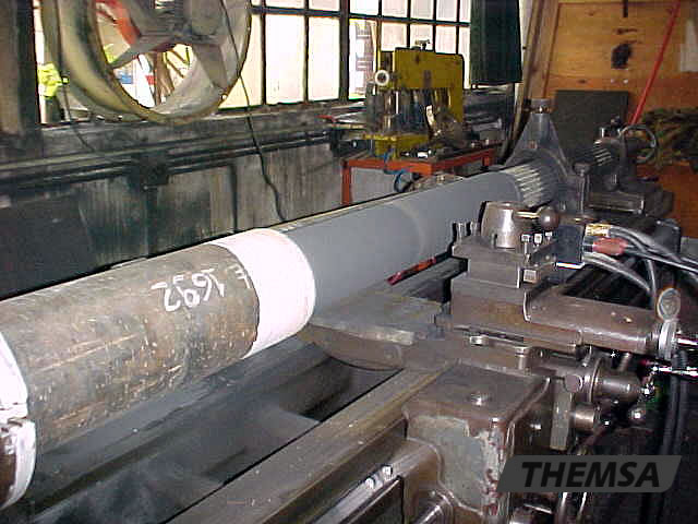 Mandril de perforación petrolero. Aplicación con mentalización en frío con material duro anti fricción para su posterior rectificado final de terminación, el aporte se realizo en forma automatizada para lograr un aporte uniforme.